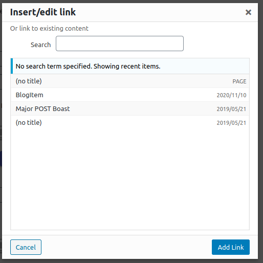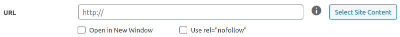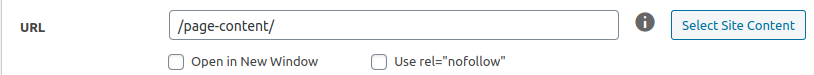 When linking to a page inside your WordPress, the easiest way is to use the ‘select site content’ button and select the page you want to link to. After selecting click on the Add Link button. The link will appear in the URL field in the button editor.