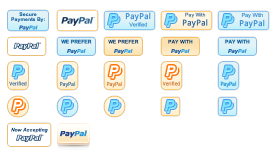 Our new button pack being released today is PayPal Buttons and features 22 buttons with multiple icons, colors and layouts. These buttons can be used to prominently display the option for customers to pay via PayPal on your website.